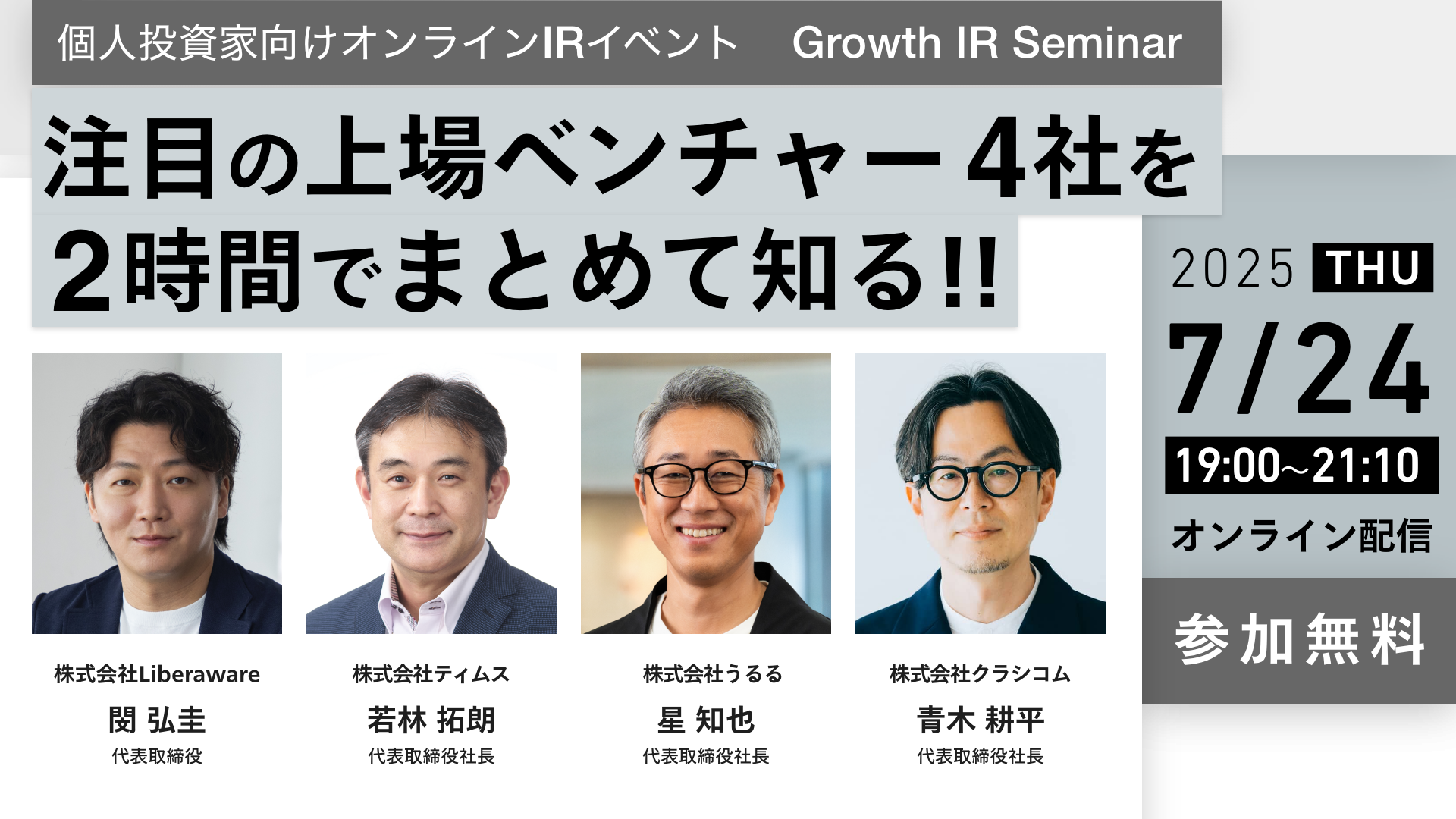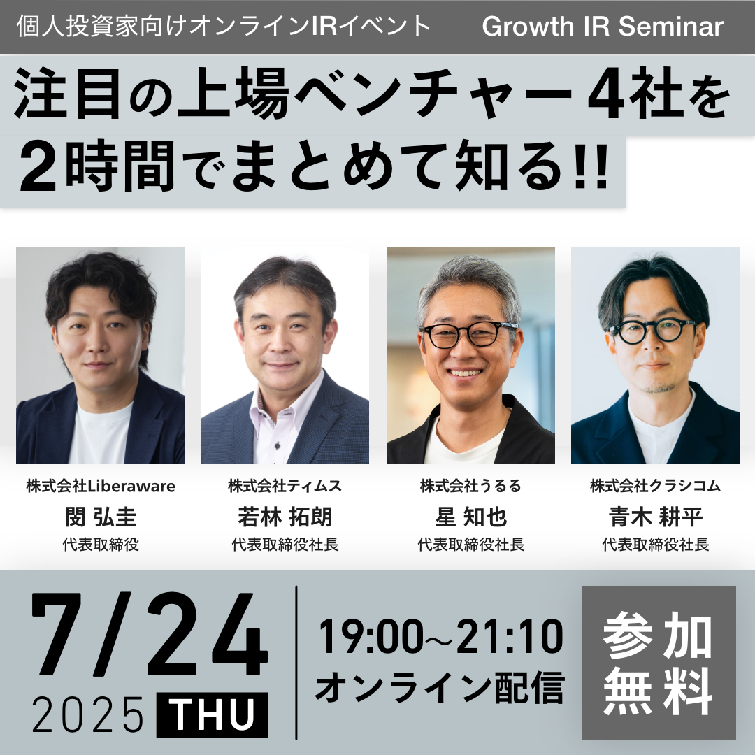 Growth IR Seminar 2025年7月24日(Liberaware、ティムス、うるる、クラシコム)2025年07月24日