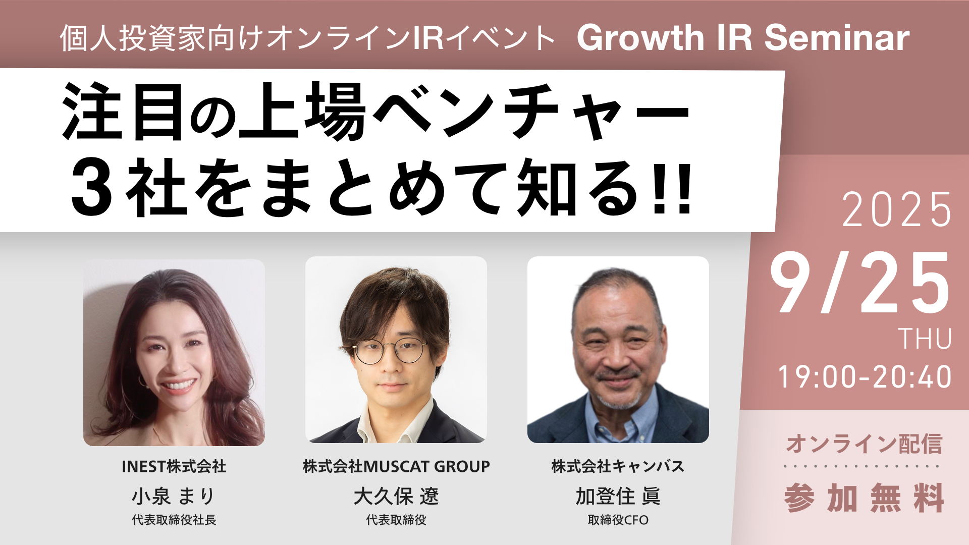Growth IR Seminar 2025年9月25日(INEST、MUSCAT GROUP、キャンバス)2025年09月25日 -
