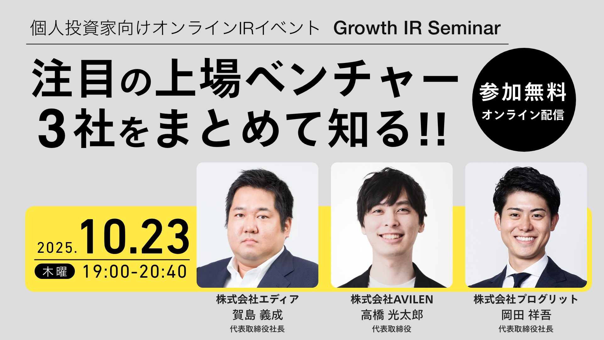 Growth IR Seminar 2025年10月23日(エディア、AVILEN、プログリット)2025年10月23日 -